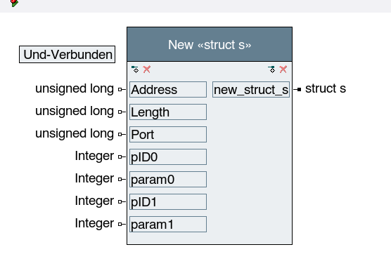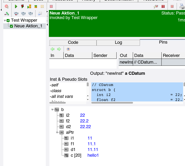 Warning: the previous expecco releases (pre 2.12) do not handle embedded structure pointers correctly. The example below will only work in 2.12 and later versions.