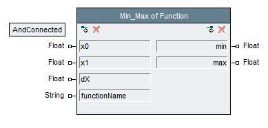 Here is a block to compute the minimum and maximum values of a mathematical function over a range of x-values. It is especially flexible, as the name of the function can be passed as an argument (for example: 'sin', 'cos' or 'arcTan'). The block's definition is: