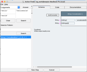 This tool attempts to find action blocks which generate a given result when provided with given input values.