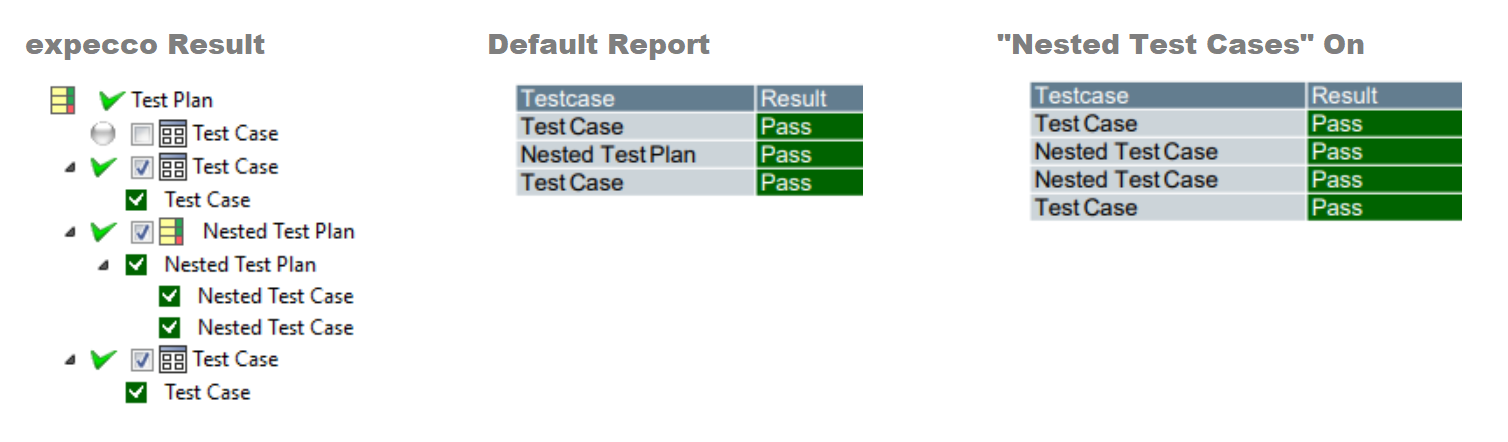 If checked all nested test cases (list items of nested test plans) will count as test cases (instead of just the list items of the root test plan).