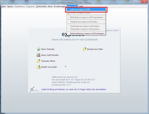 - expecco ist aktiv und baut die Verbindung zu ALM auf