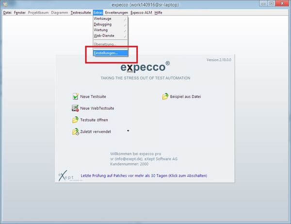 Öffnen Sie die expecco Einstellungen: