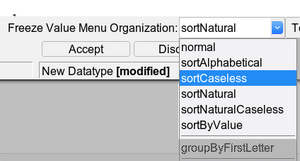 For example, the last of the above examples could be presented as either a single list with 5 items, or as a 2-item list ('foo' and 'bar') with submenus for each prefix. The menu/combolist grouping is specified in the datatype editor (at the bottom right of the editor).