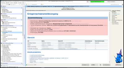 • In der Rubrik diagnostische Sicherheit wird labordiagn. Nachweis auf "ja" gesetzt.