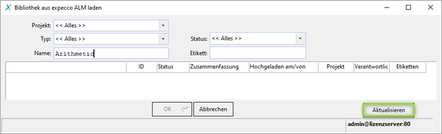 "Bibliothek aus expecco ALM reimportieren..." aus.