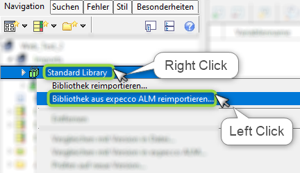 Um eine Bibliothek aus Expecco ALM zu reimportieren wählen Sie im Kontextmenü