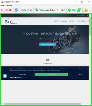 Die mit einem Klick aufzuzeichnende Aktion wird durch die Auswahlbox in der Werkzeugleiste vorgegeben.