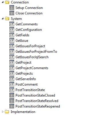 In addition to the automatic issue update (which is controlled via the user interface and therefore requires no additional programming), a library of building blocks to interact with JIRA is provided. The library is based on REST for communication.