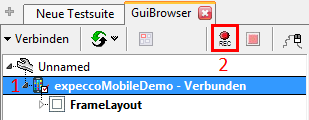 Mit Hilfe des integrierten Recorders lassen sich einfach Ausführungssequenzen aufnehmen und in einem AKtionsbaustein speichern. Dafür muss eine Verbindung zu einem Testgerät bestehen, mit dessen Hilfe der Test erstellt wird.
