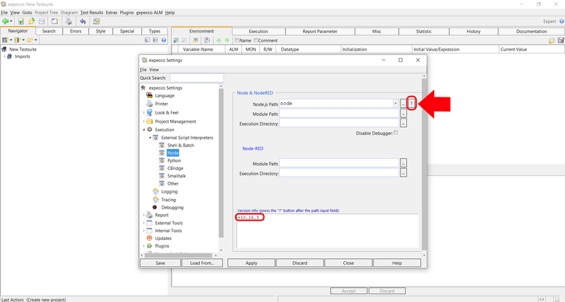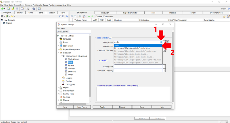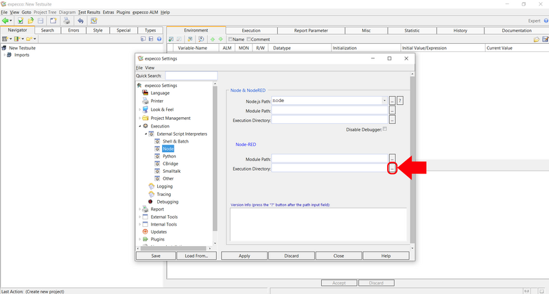 • Click on ExecutionExternal Script InterpretersNode