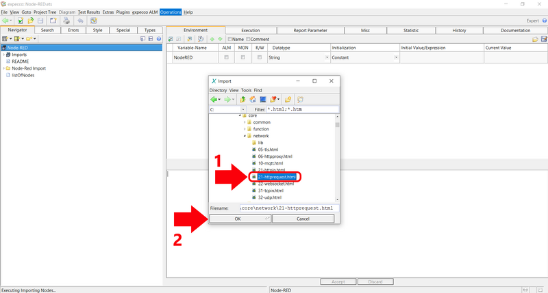 The following tutorial shows how to import nodes of Node-RED into expecco and how to use them.