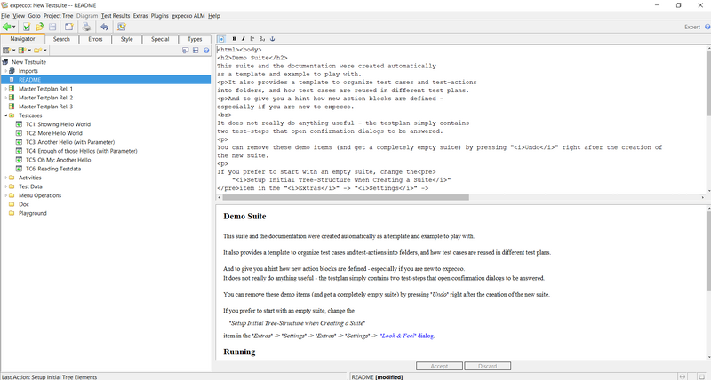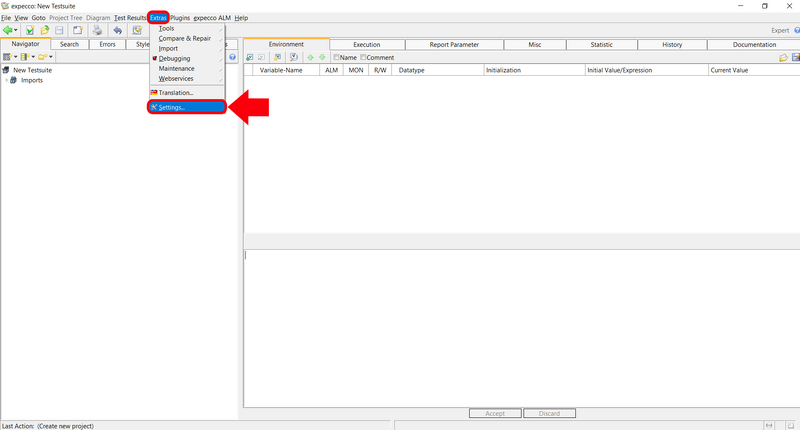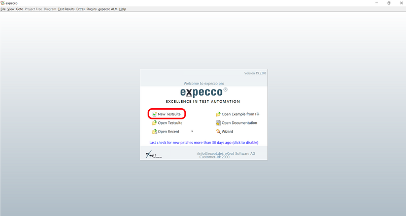 • Open a new testsuite in expecco