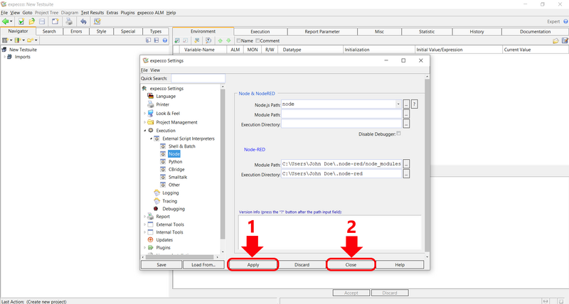• Specify at Node-REDModule Path the path to the node_modules folder