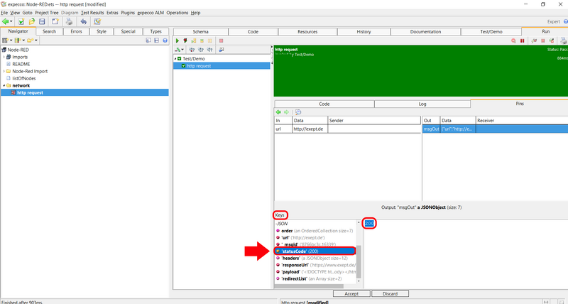 • Scroll in the field Keys to statusCode