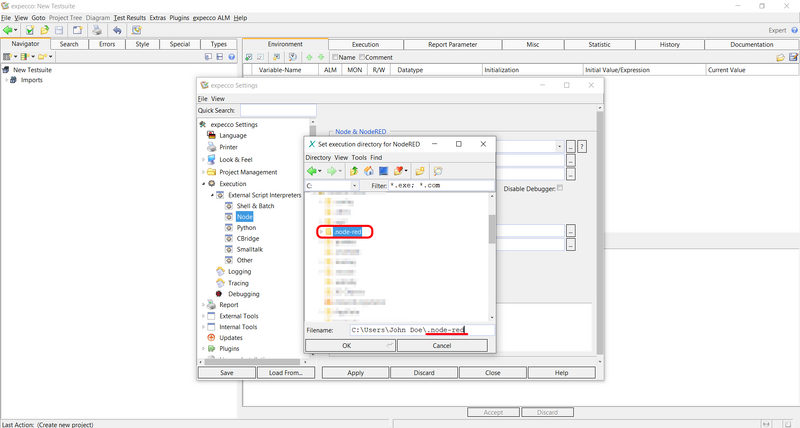• Specify at Node-REDExecution Directory the path to the .node-red folder