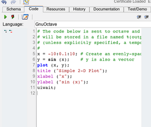 Finally, run it, by pressing the green "execute"-button. If all goes well (i.e. you have correctly installed and configured octave), the graph window should appear: