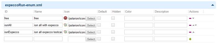 Die Enumeration kann durch Hochladen von expeccoRun-enum.xml oder manuell erzeugt werden. Die Bezeichnungen für die IDs müssen genau so übernommen werden.