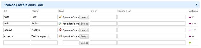 Dazu finden Sie im Installationsverzeichnis von expecco unter expecco\packages\exept\expecco\plugin\polarion\support die unten erwähnten XML-Dateien und einen Ordner mit Icons. Diese Icons können Sie in Polarion hochladen, um sie in den entsprechenden Enums zu verwenden.