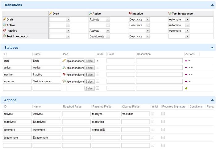 In Polarion müssen nur wenige Änderungen vorgenommen werden, um die Anbindung von expecco zu ermöglichen. Davon betroffen sind: