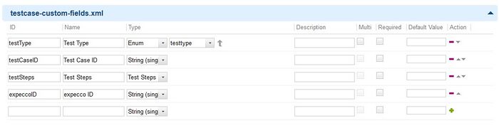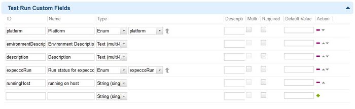 Die Customfields für den expecco-Host können durch Hochladen von expeccoRun-enum.xml oder manuell erzeugt werden. Siehe dazu folgende Abbildung.