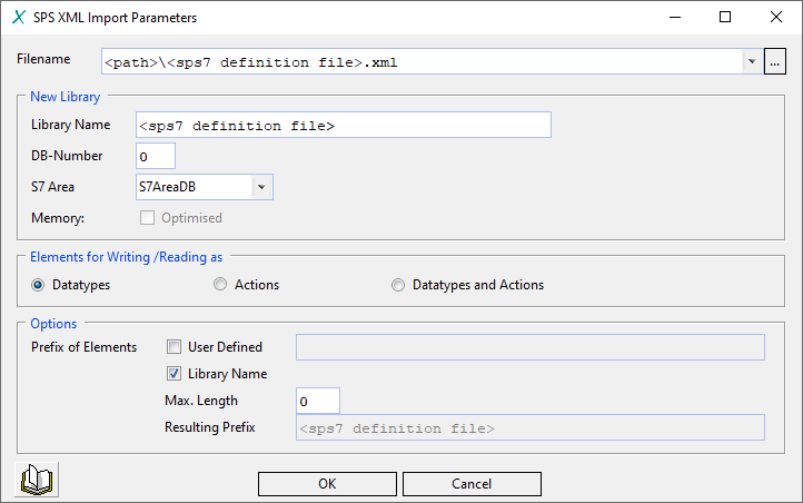 - A prefix can optionally be added to the name of the generated elements. It is made up of a user-defined text and the name of the library. In addition, the maximum length of the prefix can be limited (0 = unlimited).