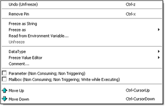 Opens a dialog to adds an environment-freeze (the value is read from a variable, if the pin is unconnected)