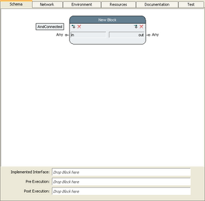 The schema editor is used to define the external interface and some other attributes of an action block (both elementary and compound actions). It is found on the "Schema" tab after selecting either an elementary or a compound action in the navigation tree.