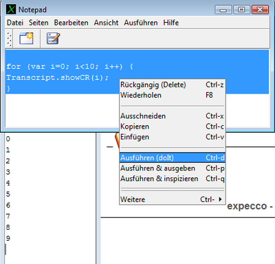The expecco Notepad as described here is a somewhat stripped-down version of the full Smalltalk Workspace application. In order to be more "beginner friendly", it has smaller menus and less functions as the full featured version.