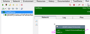 Now select the generated "CelsusToFahrenheit" action's "Test/Demo" page, give the "Celsius_in" pin some value (say: "100") and test-run it.