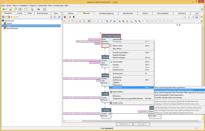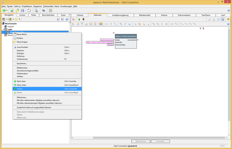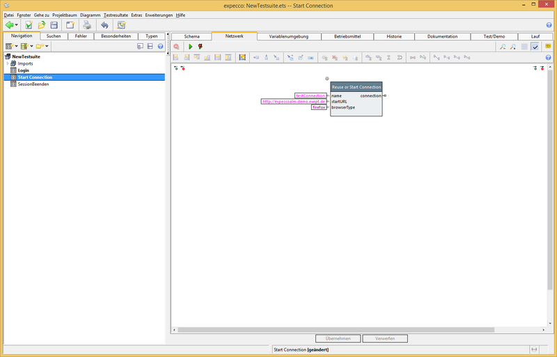 - Rechtsklick auf Baustein "Reuse or Start Connection"