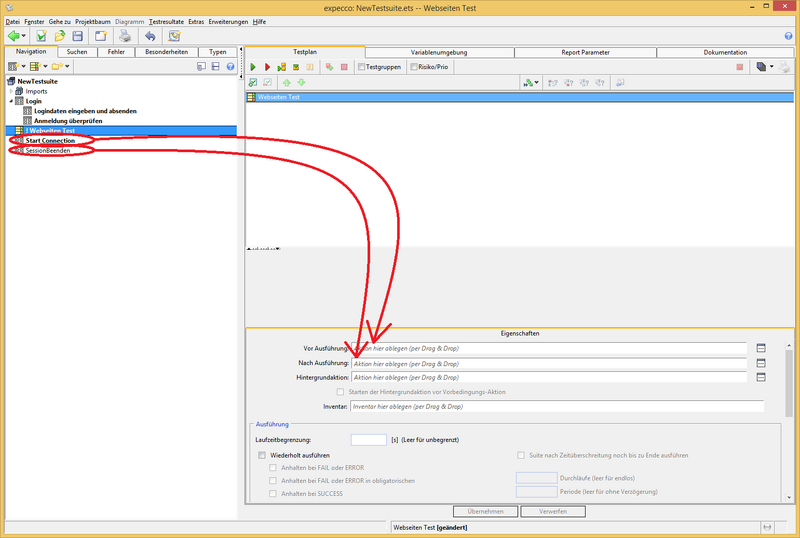 - Testplan Vor-/Nachbedingung-Baustein hineinziehen