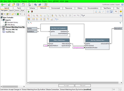 First, you have to get the filenames from the archive. Use the "[ZIP File] List Contents" action from the standard library. This action has two output pins: one where all file names appear as one (possibly big) collection, another where each filename appears in sequence (i.e. this second pin delivers multiple values, one for each file component). This second pin is perfect for streaming: you can use this to feed a processing action, which deals with every file. For now, we assume that you will first have to use a filter on the names, to process only a subset of the files.