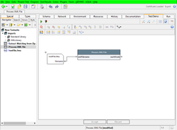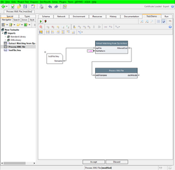 Hint: To add the XML action, press "CTRL-n" in the diagram editor, type "xml" or even "xml;file" into the filter, then the action is shown near the top of the list. Select it and press OK, or double click on it in the list.